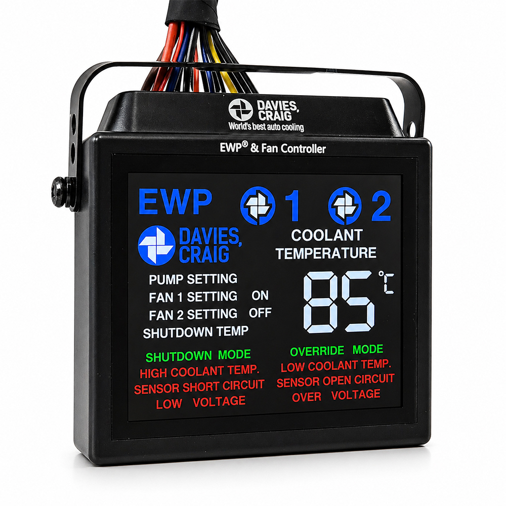 Provides optimum control of Davies, Craig 12 / 24 Volt Electric Water Pumps and Electric Fans. It Will manage the operation of the EWP® by varying the speed of the pump in response to the coolant temperature and manage control of your electric engine fan.